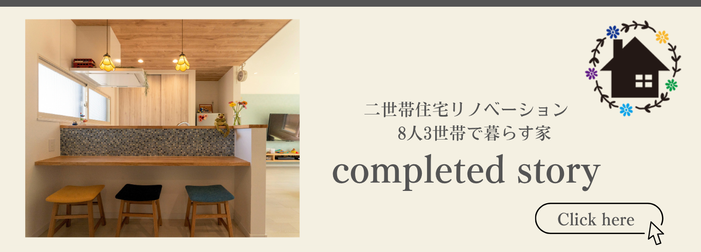 8人3世帯で暮らす二世帯リノベーション事例|団らんを叶えたカフェ風ダイニングの家(親世帯住居)【和泉市】